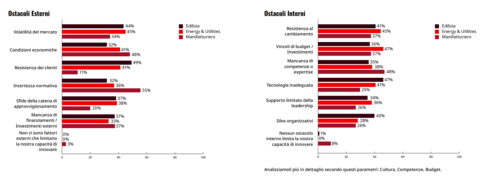 A questo si somma una diffusa resistenza al cambiamento, trasversale a tutti i comparti ma particolarmente acuta nel settore energetico, dove coinvolge il 45% delle realtà intervistate.