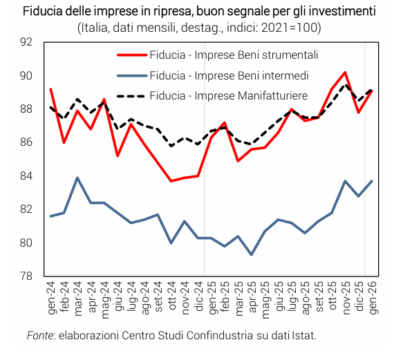 A gennaio 2026, la fiducia delle imprese che producono macchinari e impianti ha mostrato un miglioramento significativo, segnalando una propensione all’investimento che funge da ammortizzatore contro la debolezza dei consumi interni.