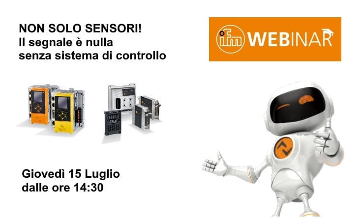 ifm electronic ha organizzato un nuovo webinar gratuito “Non solo sensori! Il segnale è nulla senza sistema di controllo”, che si terrà giovedì 15 luglio 2021 alle ore 14.30.