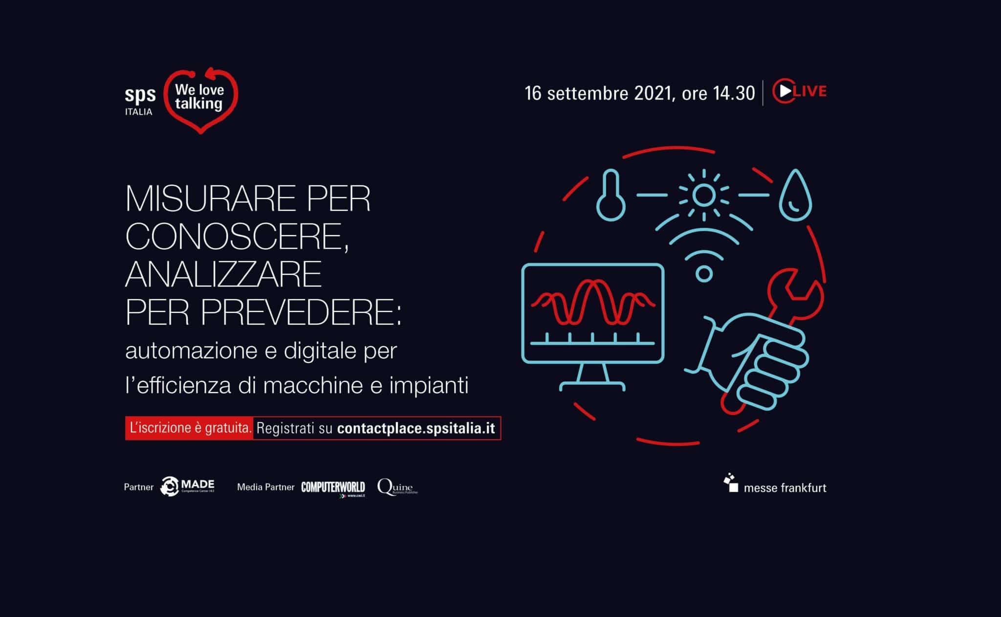 Ripartono il 16 settembre gli appuntamenti “We Love Talking” di SPS Italia con un pomeriggio di confronto sulla manutenzione predittiva per l’ottimizzazione del ciclo produttivo. Conoscere in anticipo i potenziali problemi dell’impianto, programmare la sostituzione dei componenti, limitare fermi macchina imprevisti sono tra i benefici a cui puntare per un miglioramento della produzione in termini di flessibilità, efficienza, velocità di risposta al mercato verso una maggior competitività delle imprese grazie alle tecnologie digitali e di