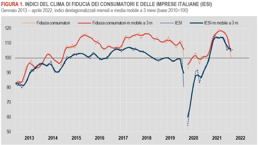 Dopo il brusco calo registrato lo scorso mese – la prima rilevazione che includeva gli effetti della guerra tra Russia e Ucraina – ad aprile la fiducia di consumatori e imprese fa segnare solo dei piccoli assestamenti.