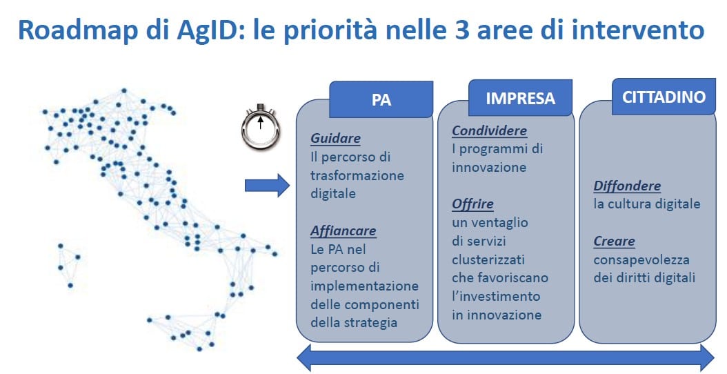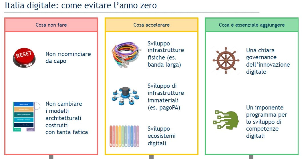 Nel 2018 si è insediato il nuovo direttore dell’Agenzia per l’Italia Digitale (Agid), Teresa Alvaro, è finito il mandato di Diego Piacentini come Commissario straordinario per l’attuazione del programma, gli è succeduto Luca Attias, e si è insediato un nuovo Governo. A fronte di queste discontinuità, è importante dare continuità ai progetti intrapresi per evitare che questo sia un nuovo “Anno zero” dell’innovazione digitale.