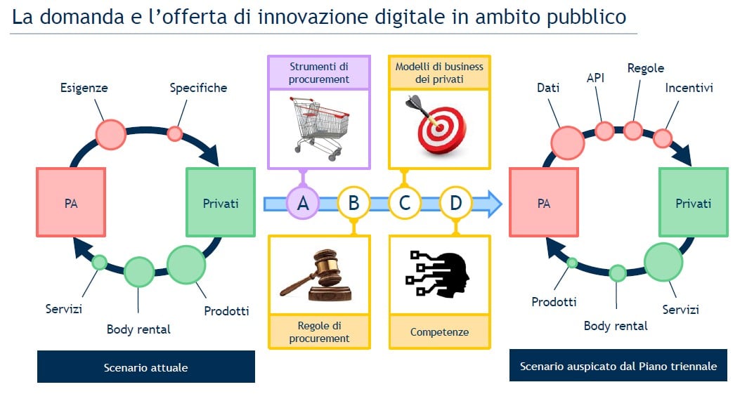 I numeri in gioco, in sostanza, riflettono un sistema che sembra aver “cambiato passo” rispetto a due anni fa, e che finalmente si muove, con tutti i suoi limiti, verso un nuovo scenario in cui le tecnologie digitali cominciano a trasformare in modo irreversibile i processi con cui è creato valore in ambito pubblico e privato.