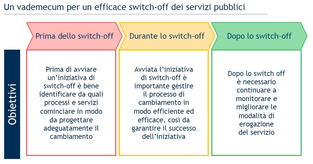 Le principali motivazioni identificate dai Comuni per realizzare lo Switch-off sono la volontà di migliorare l’erogazione dei servizi e l’interesse politico, mentre le difficoltà maggiori riguardano la scarsità di risorse economiche e la necessità di trovare meccanismi e modalità per superare la mancanza di competenze digitali da parte dei cittadini.