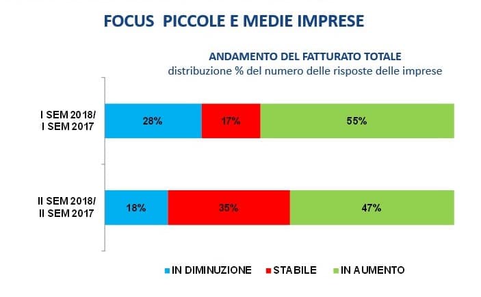 L’andamento negativo si è fatto sentire anche in termini di esportazioni, con una flessione del 4% tra secondo e primo semestre 2018, rispetto invece a una crescita del 3,7% tra i due semestri precedenti. Sul fronte interno, si sentono gli effetti dovuti al rallentamento degli investimenti, con una diminuzione del 2,6% tra secondo e primo semestre 2018, rispetto a una crescita dell’8% tra i due semestri precedenti.
