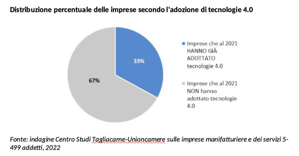Trentaseimila imprese prevedono di imboccare per la prima volta la strada della transizione 4.0 entro il 2024, una su quattro lo farà utilizzando le risorse del PNRR. È quanto emerge da un’indagine condotta quest’anno dal Centro Studi Tagliacarne svolta su un campione di 4.000 imprese manifatturiere e dei servizi tra 5 e 499 addetti, rappresentativo dell’universo di 494 mila mila imprese.