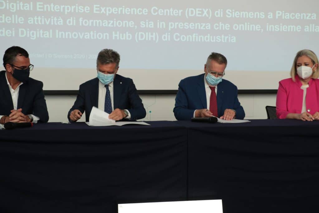 L’intesa è stata siglata da Siemens Digital Industries Italia e Confindustria, presso il Digital Enterprise Experience Center (Dex) di Piacenza alla presenza di Giuliano Busetto, Head of Digital Industries di Siemens, il Direttore Generale di Confindustria Francesca Mariotti, il Vice Presidente di Confindustria per le Filiere e Medie Imprese Maurizio Marchesini e il Responsabile del Coordinamento Nazionale dei Dih di Confindustria Gianluigi Viscardi.