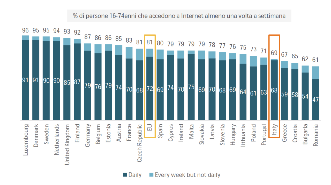 Che dire del fatto che due terzi della popolazione nel 2017 hanno utilizzato la rete e che il 50% la utilizza quotidianamente? Bene, possiamo osservare, ma è ancora poco per una trasformazione digitale veramente vera e comunque, come appare dalla ricerca, è un percorso di digitalizzazione che perde per strada un 30% circa delle famiglie che risulta ancora privo di connessione web.