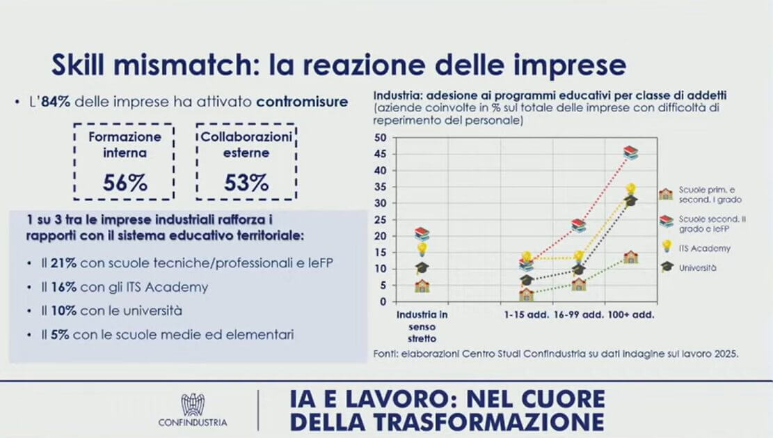 Di fronte a questo scenario, il sistema produttivo non rimane inerte: l’84% delle imprese attiva contromisure specifiche, privilegiando la formazione interna e le collaborazioni esterne.