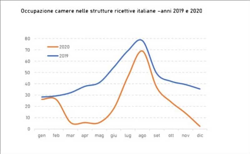 La crisi del comparto mostra tutta la sua drammatica evidenza nei dati dell’Osservatorio sull’Economia del Turismo: tutti i mesi sono al di sotto delle vendite registrate del 2019, con un calo vertiginoso nei primi mesi di lockdown nazionale, una leggera ripresa nei mesi di luglio, agosto e settembre, un nuovo deciso calo già ad ottobre che arriva a sfiorare la totale assenza di vendite di dicembre.