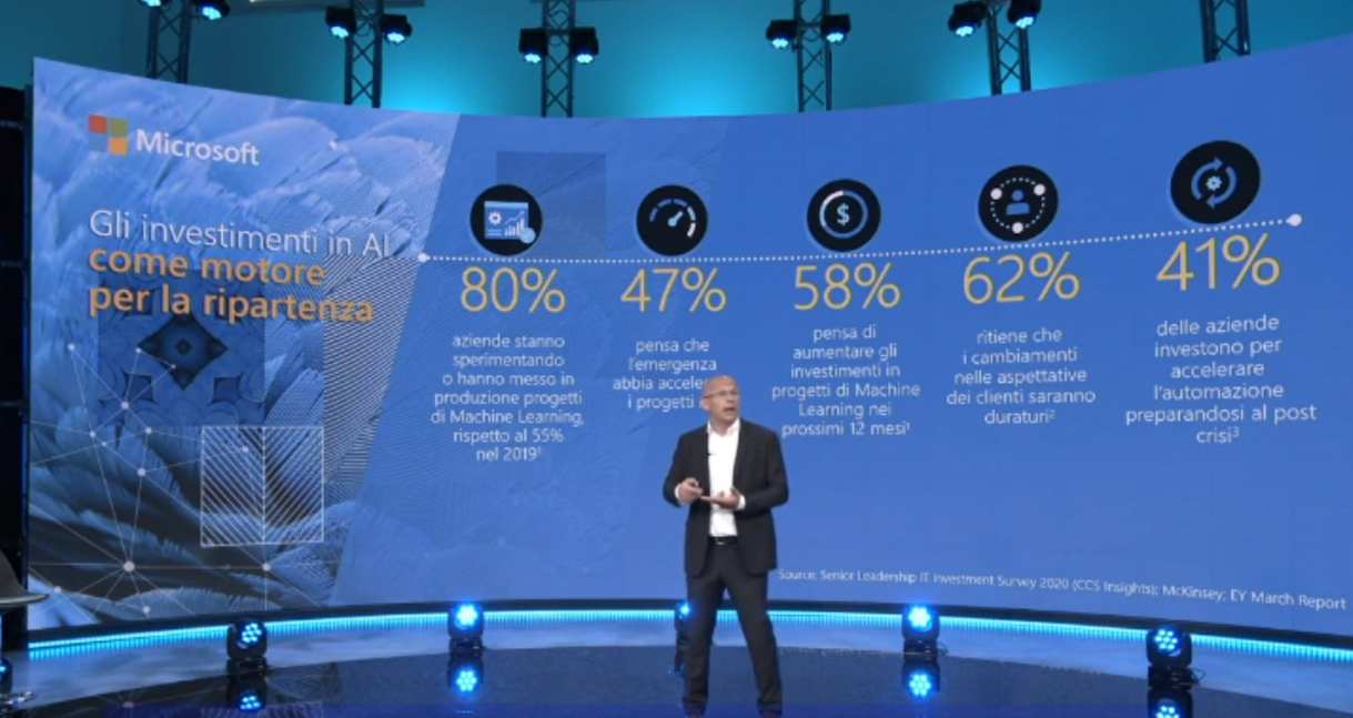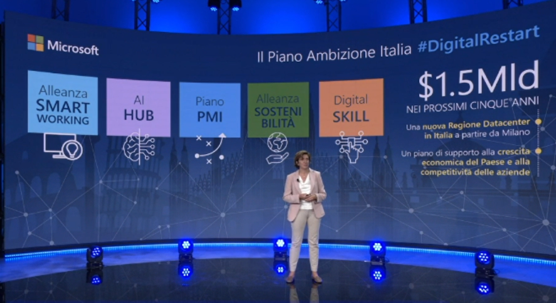 Il piano di rilancio Next Generation EU colloca l’Italia all’interno di un processo europeo di ripartenza e sviluppo economico che, insieme al PNRR italiano, offre al Paese la possibilità di fare un balzo verso il futuro. Beneficiando di questa accelerazione e cavalcando il potenziale delle nuove tecnologie come Cloud e Intelligenza Artificiale, Microsoft definisce la sua ricetta vincente per accompagnare le aziende italiane pubbliche e private nell’impresa dello sviluppo digitale e sostenibile. Un obiettivo che l’azienda di Redmont si è posta con il lancio del progetto Ambizione Italia #DigitalRestart, un piano quinquennale del valore di 1,5 miliardi di dollari di investimenti in tecnologie e competenze per accelerare la trasformazione digitale del Paese in linea con le priorità del Governo. A un anno dal lancio, Microsoft fa il punto sui driver strategici al centro delle priorità del Paese e dell’impegno dell’ecosistema dell’azienda in Italia. Il summit virtuale organizzato giovedì 17 giugno 2021, dal titolo “L’innovazione per la crescita sostenibile”, è stata l’occasione per esplorare i tre pilastri fondamentali per la transizione digitale, quali Sostenibilità, Intelligenza Artificiale e Futuro del Lavoro, e per condividere best practices e progetti concreti di aziende chiave impegnate nel loro processo di trasformazione in Intelligence Driven Organization.