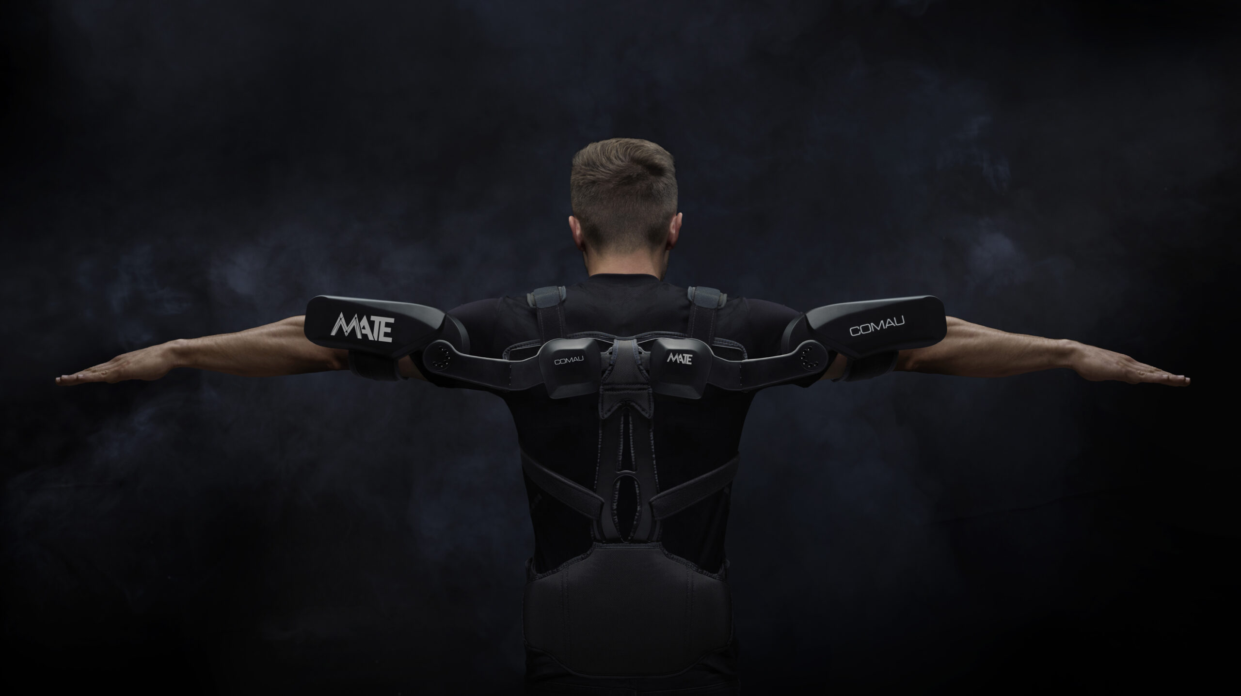 - Mate, esoscheletro passivo per gli arti superiori progettato da Iuvo e prodotto da Comau, leader mondiale dell’automazione industriale. La sua funzione è quella di assistenza nell’esecuzione di operazioni ripetitive o nel sollevamento di carichi.