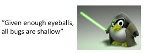 Il secondo principio è noto come la legge di Linus (figura4) e richiama all’approccio alla base del software open source. Ovvero, dato un numero sufficiente di occhi (alias, persone), tutti gli errori (malfunzionamenti del software) possono essere risolti. E ciò dunque rimanda ad un approccio collaborativo alla risoluzione dei problemi.