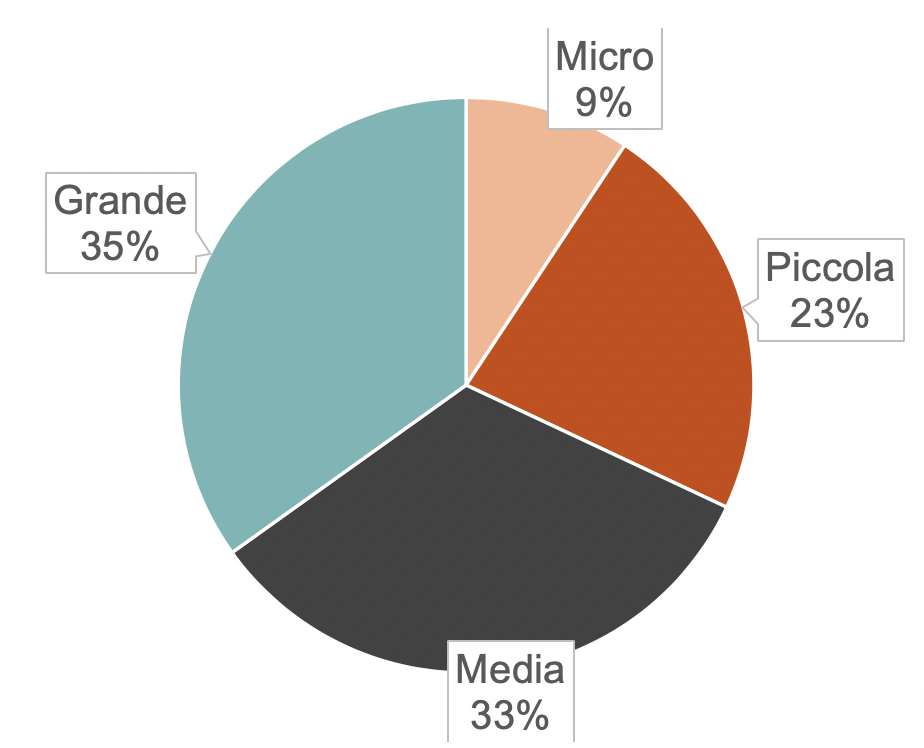 Fig. 1 – Composizione campione (dimensione)![]() | ![]() Fig. 2 – Composizione del campione (macro-settori) |