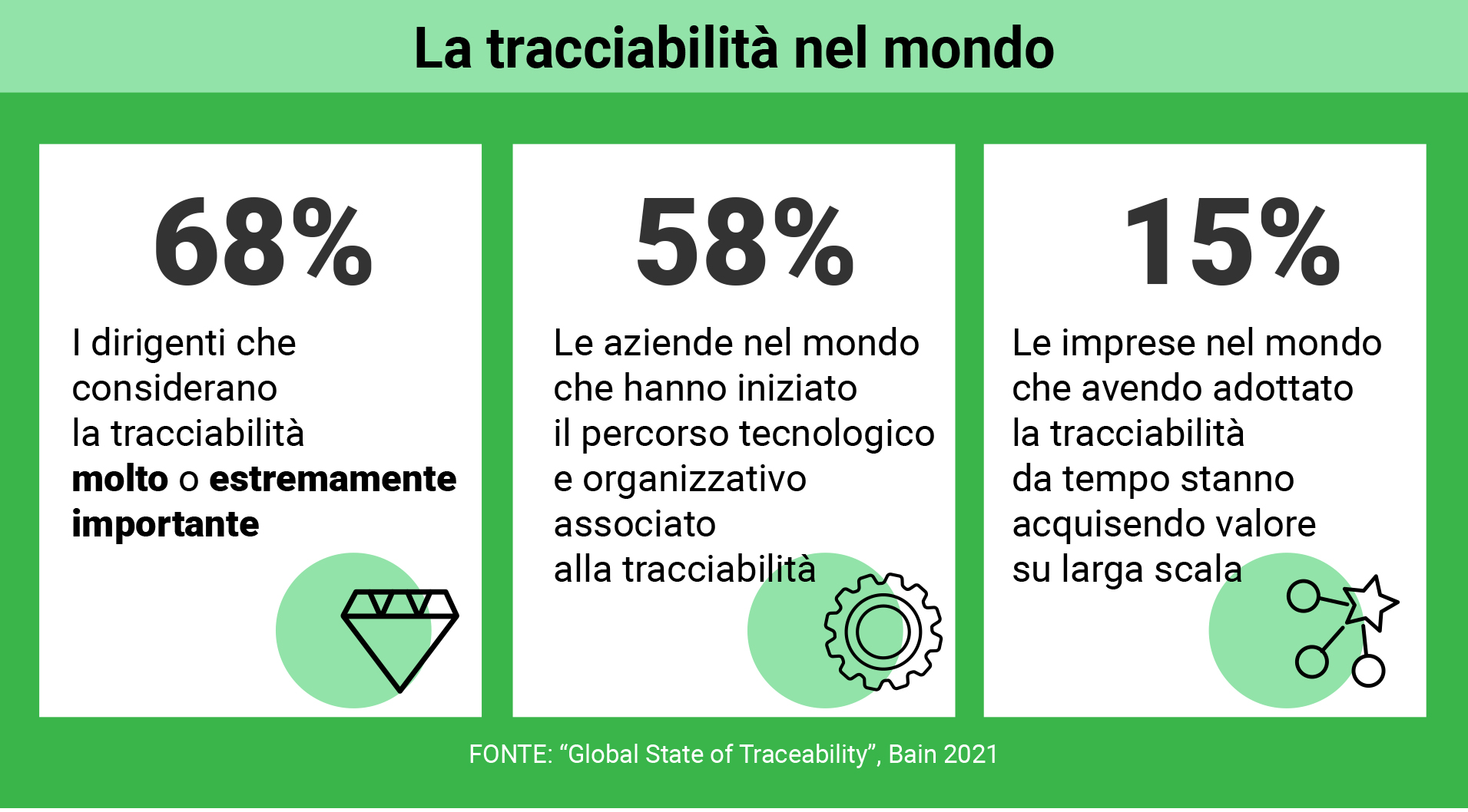La tracciabilità offre alle aziende la possibilità di raccogliere informazioni esatte su tutte le componenti di un prodotto grezzo, semilavorato e finito così come su tutte le pratiche di approvvigionamento dei fornitori e di tutti i vari partner coinvolti nei processi di conversione. Dati alla mano, le aziende possono fare previsioni, eseguire scenari e ottimizzare dinamicamente operatività e strategie decisionali. I team dirigenziali possono servire meglio i clienti, identificare il consumo di risorse non necessario, rispondere più rapidamente ai cambiamenti della domanda ed evadere gli ordini in modo più efficiente, reindirizzando rapidamente le spedizioni per ridurre al minimo l’interruzione della fornitura per far fronte al risk management nel modo più tempestivo. Grazie alla tracciabilità le aziende possono identificare le opportunità strategiche della catena del valore, innovare più rapidamente, ridurre al minimo l’impatto delle interruzioni interne ed esterne e certificare processi e prodotti sostenibili. La combinazione di questi innumerevoli vantaggi si traduce in una maggiore crescita dei ricavi, minori costi, maggiore quota di mercato, migliori ritorni sull’investimento e rendimenti complessivi per gli stakeholder. I leader della tracciabilità contribuiscono anche a definire le best practices, gli standard e le normative nei loro settori di riferimento.