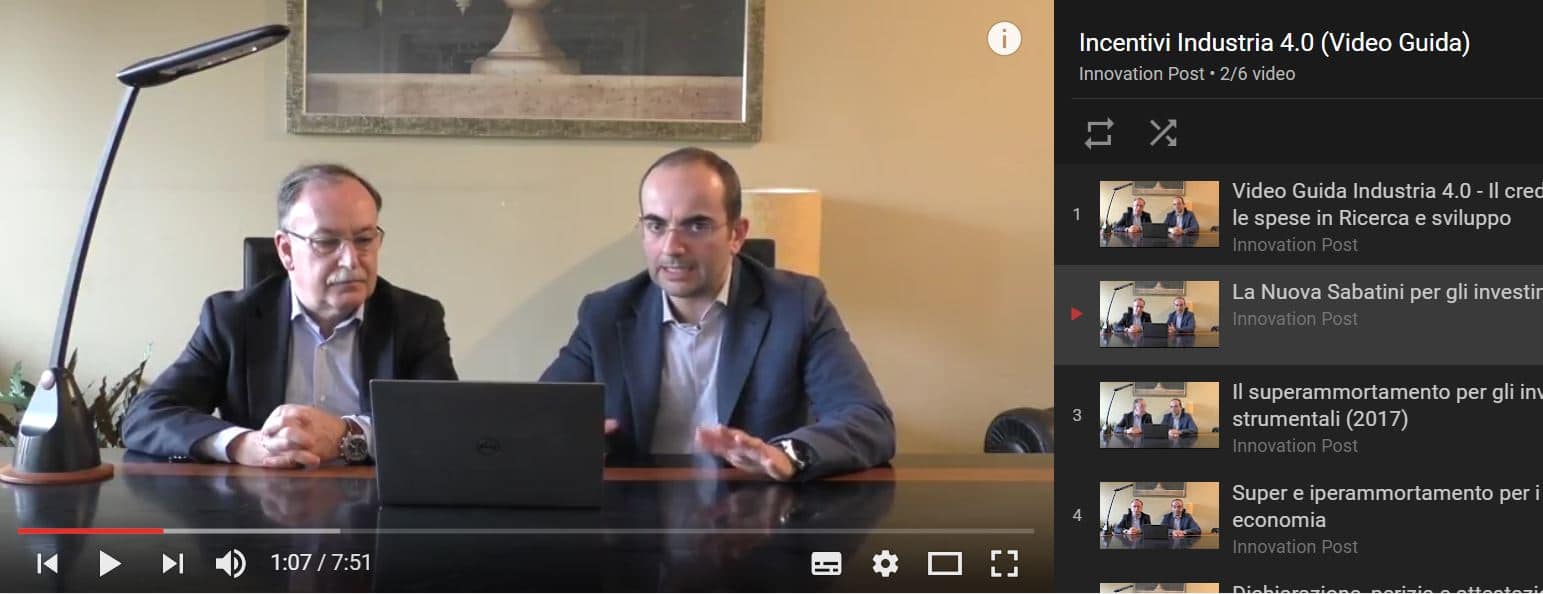 Per proseguire su questa strada e diffondere il più possibile le conoscenze di base sugli incentivi all’innovazione previsti nel Piano Nazionale Industria 4.0, abbiamo così deciso di realizzare una video guida, che abbiamo reso disponibile sul nostro canale YouTube.