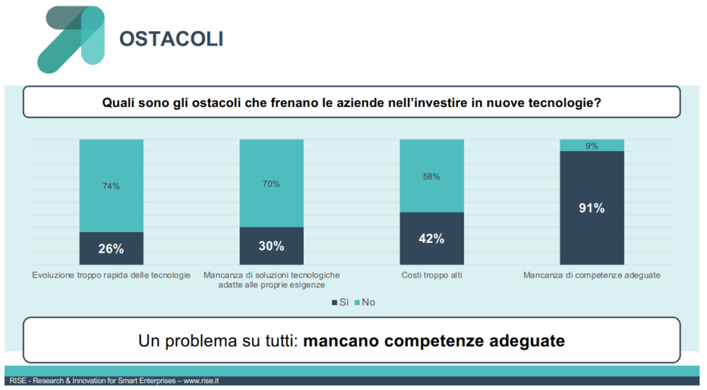 - Il principale ostacolo agli investimenti tecnologici è la mancanza di competenze.