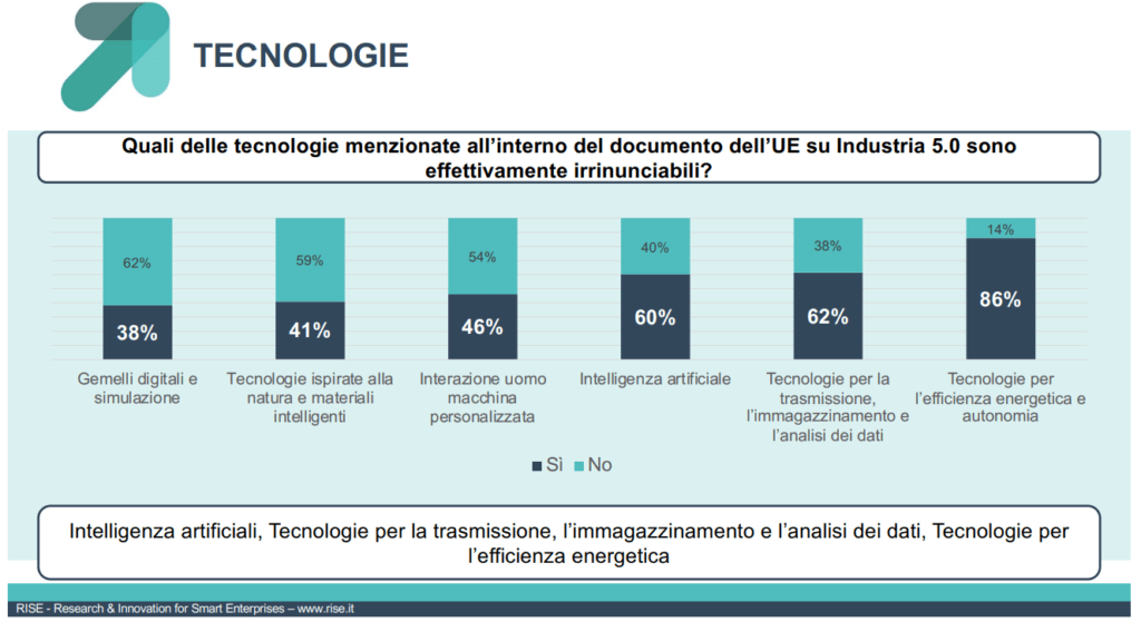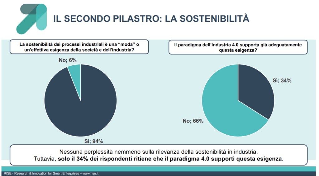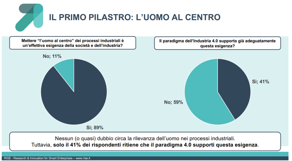 - Il 90% degli intervistati ritiene che mettere l’uomo al centro sia una necessità, mentre il 94% crede che la sostenibilità sia una questione cruciale non sufficientemente affrontata dall’Industria 4.0.