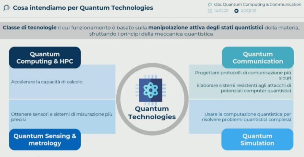 “Le Quantum technologies potrebbero trasformare radicalmente il mondo dell’informatica, aprendo nuove opportunità per la risoluzione di problemi computazionali, di sicurezza o di comunicazione oggi complessi, con impatti significativi in diversi settori e modelli di business”, spiega Alessandro Piva dell’Osservatorio Quantum Computing & Communication: “queste tecnologie potranno avere molteplici campi d’applicazione: ad esempio dal machine learning alla crittografia, dalla cybersecurity all’ottimizzazione”.