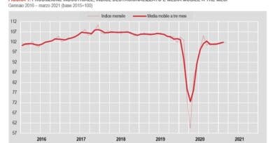 Considerando i principali raggruppamenti d’industria, l’unico settore in cui a febbraio si ha una crescita rispetto al mese precedente è quello dell’energia (+2,7%), mentre sono in calo i beni intermedi (-1,1%) e i beni di consumo (-0,9%). Nessuna variazione invece per i beni strumentali. Guardando invece ai valori tendenziali rispetto allo stesso mese del 2019, si registra una crescita solo per i beni strumentali (+1,4%), mentre diminuiscono i beni di consumo (-3%), i beni intermedi (-2,3%) e l’energia (-0,6%).