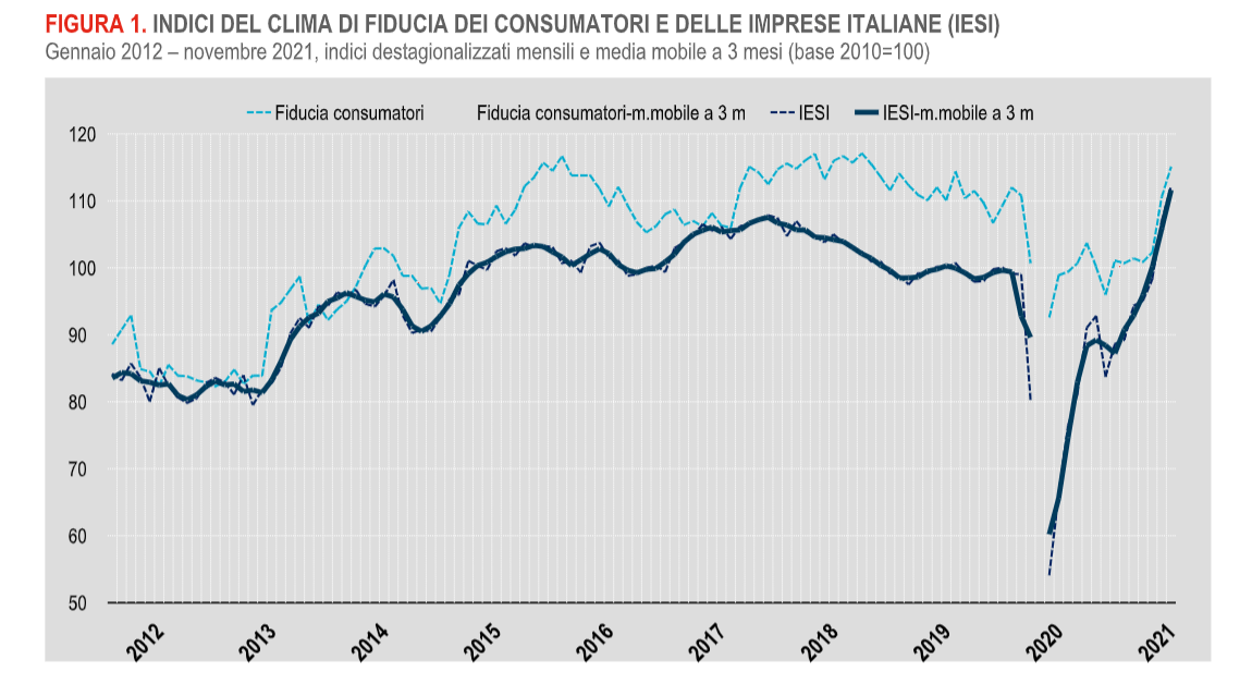 A novembre l’indice che riflette il clima di fiducia dei consumatori torna a registrare una lieve flessione, mentre l’indice composito del clima di fiducia delle imprese fa segnare un leggero rialzo e resta su livelli da record.