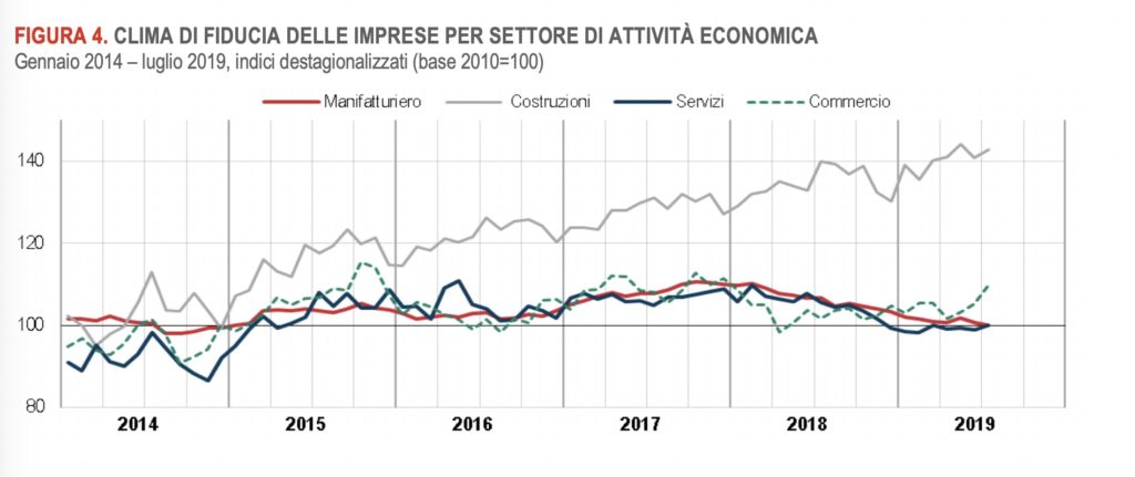 Nel comparto manifatturiero prosegue invece la lenta, ma costante discesa dell’indice di fiducia, che aveva registrato una lieve ripresa solo a maggio. Il dato attuale, 100,1 punti, è+ il più basso da inizio 2015.