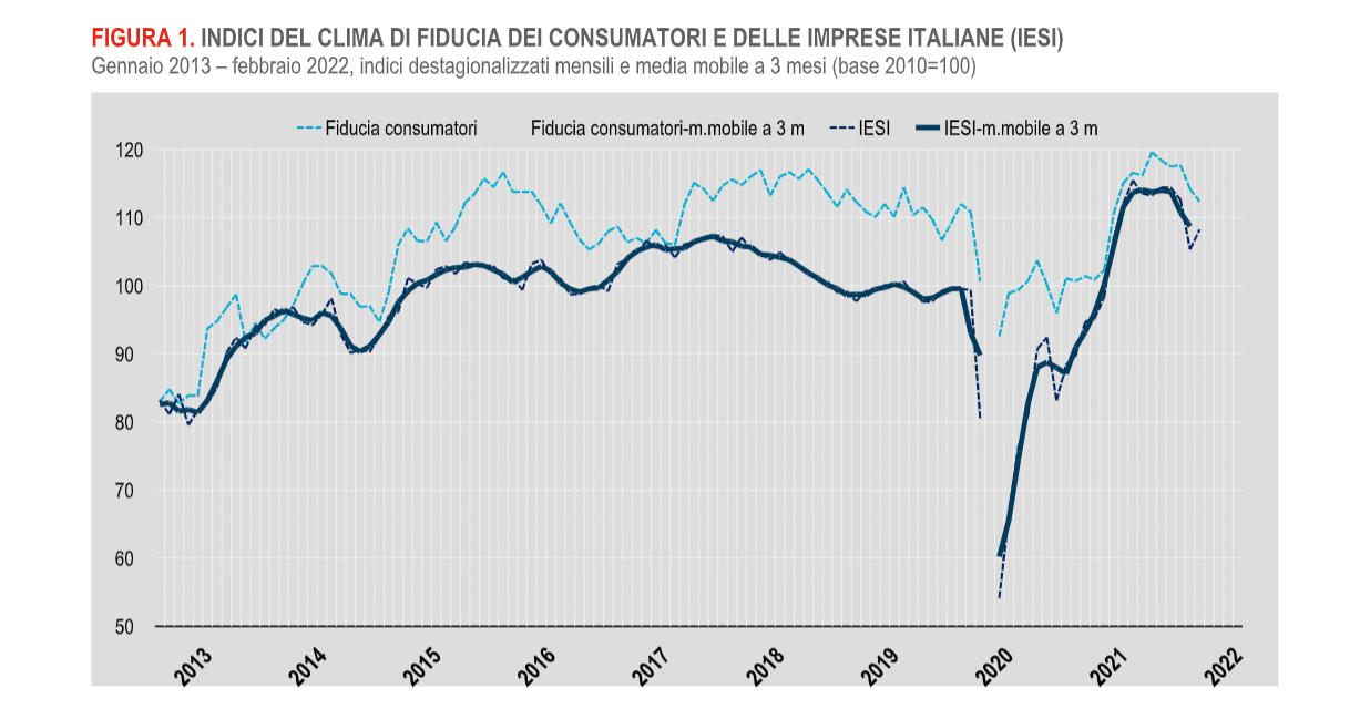 Per quanto riguarda la fiducia dei consumatori la flessione di febbraio – che porta l’indice a registrare i valori più bassi da maggio 2021 – è dovuta a un peggioramento di tutte le componenti, ad eccezione del clima futuro.