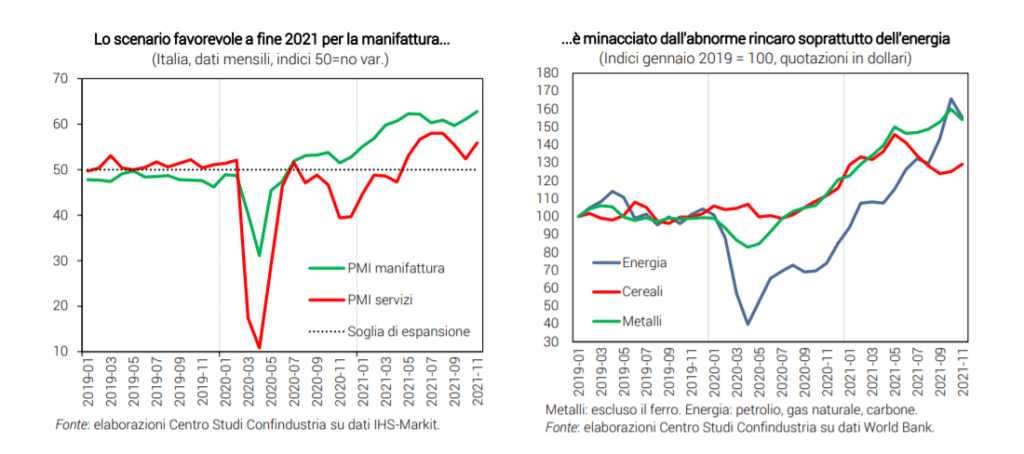 Nel 4° trimestre si conferma una frenata dell’economia italiana: preoccupano la scarsità di commodity, i prezzi alti dell’energia, i margini erosi e l’aumento dei contagi.