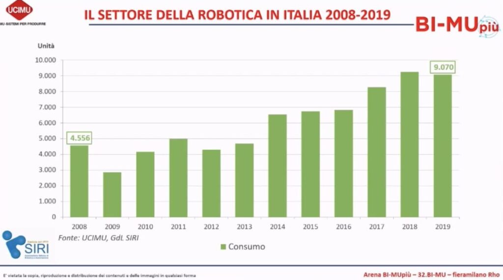Per quanto riguarda l’anno in corso, Siri stima che nel 2020 saranno installati 7.437 nuovi robot, con un calo del 18% rispetto al 2019.