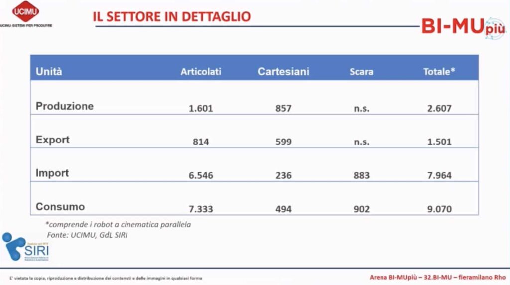 Questi numeri fanno scalare un’ulteriore posizione all’Italia nella classifica dei paesi consumatori di robot industriali: dopo essere salita dall’ottavo al settimo posto nel 2018, ora l’Italia occupa la sesta posizione al mondo, confermandosi anche come secondo mercato per dimensioni in Europa, alle spalle della Germania.