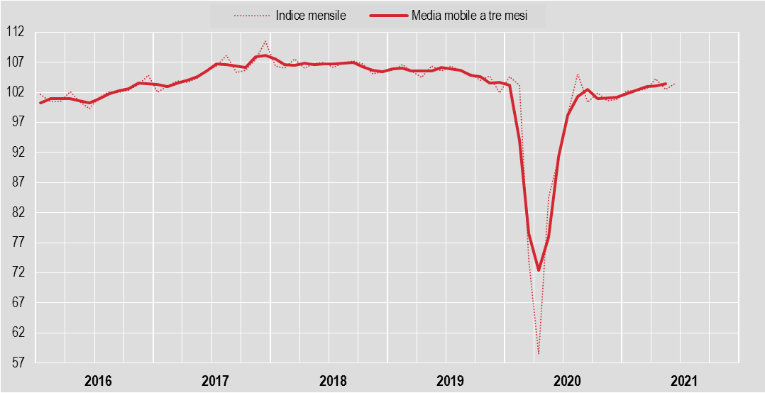 Per quanto riguarda l’analisi tendenziale (ossia il confronto con i valori registrati a giugno 2020), l’indice generale sia quelli settoriali mostrano aumenti marcati, anche a causa dei bassi livelli produttivi del giugno dello scorso anno.