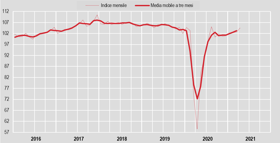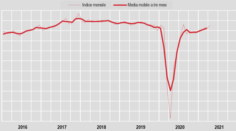 Corretto per gli effetti di calendario, ad aprile 2021 l’indice complessivo aumenta in termini tendenziali (quindi paragonati con i valori di aprile 2020) del 79,5%, in ragione del dato eccezionalmente basso di aprile 2020, quando molte attività produttive erano ferme a causa del lockdown.
