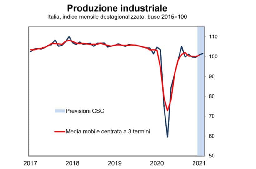 Come evidenzia l’analisi del CSC, nei primi due mesi dell’anno l’industria italiana ha dimostrato ancora una volta la sua resilienza, a fronte di una recrudescenza della pandemia di Covid-19: nel primo trimestre 2021, infatti, la variazione congiunturale acquisita della produzione industriale è di +1,1%, dopo il -0,8% rilevato dall’Istat nel quarto.