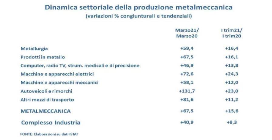 “Non va dimenticato, tuttavia, che nella crescita a doppia cifra che si riscontra nel dato tendenziale influisce pesantemente la situazione in cui versava il Paese nel marzo 2020, quando a causa del primo lockdown generalizzato molte attività erano ferme”, precisa Fabio Astori, Vice Presidente Federmeccanica.