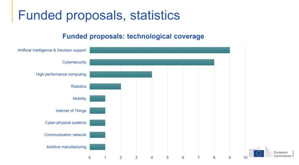 La valutazione da parte della commissione è stata fatta secondo tre criteri: pertinenza (relevance), implementazione e impatto. Occorreva inoltre l’esistenza di almeno una proposta per paese incentrata sull’intelligenza artificiale (AI) nonché la più ampia possibile copertura geografica, tecnologica e settoriale delle proposte all’interno di ciascun Paese.