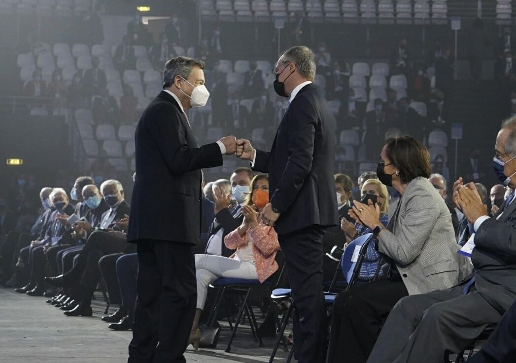 E sul tema delle azioni per la riduzione dei cambiamenti climatici Draghi risponde: “Dobbiamo prendere misure ambiziose per ridurre le emissioni e contenere l’aumento della temperatura. Ma dobbiamo tenere conto della capacità di riconversione delle nostre strutture produttive, come ha rilevato anche il Presidente Bonomi prima. Lo Stato deve fare la sua parte nell’aiutare cittadini e imprese a sostenere i costi di questa trasformazione”.