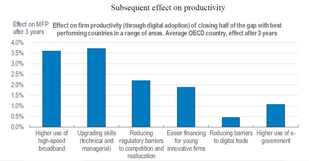 Del resto, quando e dove le cose funzionano per il verso giusto, rileva il Report Ocse, gli aumenti di produttività derivanti dall’adozione del digitale possono essere sostanziali.