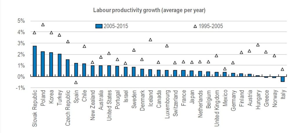 Innanzitutto, serve lo sviluppo e l’uso efficiente della tecnologia da parte delle imprese rimaste più indietro e meno produttive. “In molti casi, opportunità e possibilità di sviluppo sono sottoutilizzate, e occorre fare di tutto per spingere una maggiore diffusione delle tecnologie, e un loro migliore utilizzo, al fine di massimizzarne i benefici in termini di produttività”, esortano gli analisti dell’Organizzazione per la cooperazione e lo sviluppo economico.