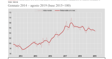 La dinamica dell’indice è legata al forte differenziale negativo che si è creato per la componente dei beni industriali non energetici (-1,1%) e dei servizi (-0,8%).