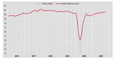 A questi fenomeni si è aggiunta una sensibile diminuzione nei giudizi e nelle attese sugli ordini (sia interni che esteri, questi ultimi in area di contrazione dopo cinque mesi consecutivi di espansione) e nei giudizi e nelle attese sui livelli di produzione delle imprese manifatturiere, il cui valore non toccava livelli così bassi da marzo dello scorso anno. L’indice delle attese sull’economia italiana ha registrato un crollo da +0,6 a inizio anno fino a -34,8 di aprile, valore comparabile a quello di dicembre 2020.