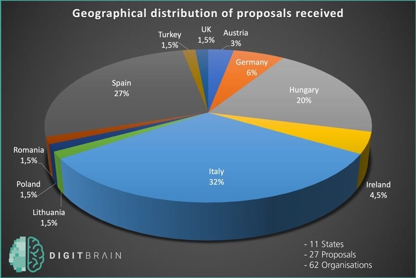 DigitBrain è un progetto europeo che ha vinto un bando di finanziamento Horizon 2020, mettendo a sistema un consorzio internazionale di 36 soggetti, provenienti dall’Italia, Germania, Spagna, Ungheria, Repubblica Ceca, Olanda, Danimarca, Russia, Finlandia, Romania, Estonia, Austria e Regno Unito.