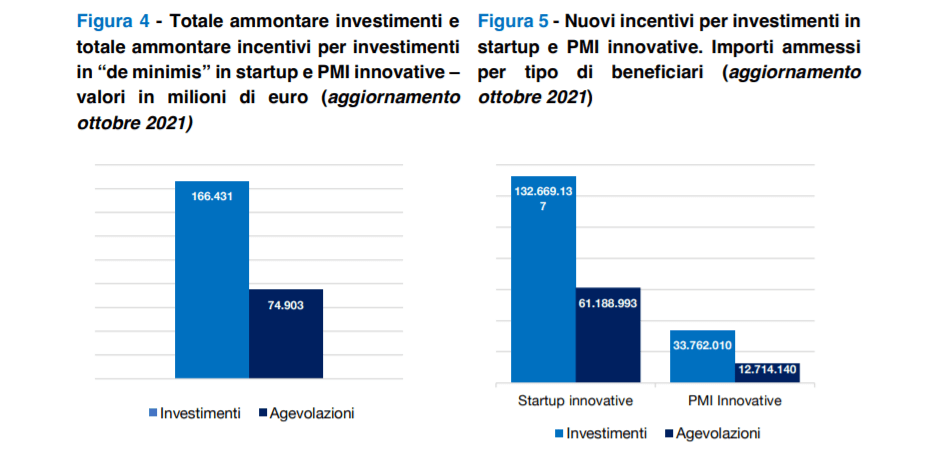 piattaforma telematica nel marzo 2021 – sono stati accolti con grande successo da parte delle startup innovative: dal mese di marzo al mese di ottobre del 20213 sono state approvate poco più di 11.410 operazioni di startup, per un totale di agevolazioni fiscali di quasi 61,2 milioni di euro, a fronte di oltre 132,6 milioni di euro di investimenti.