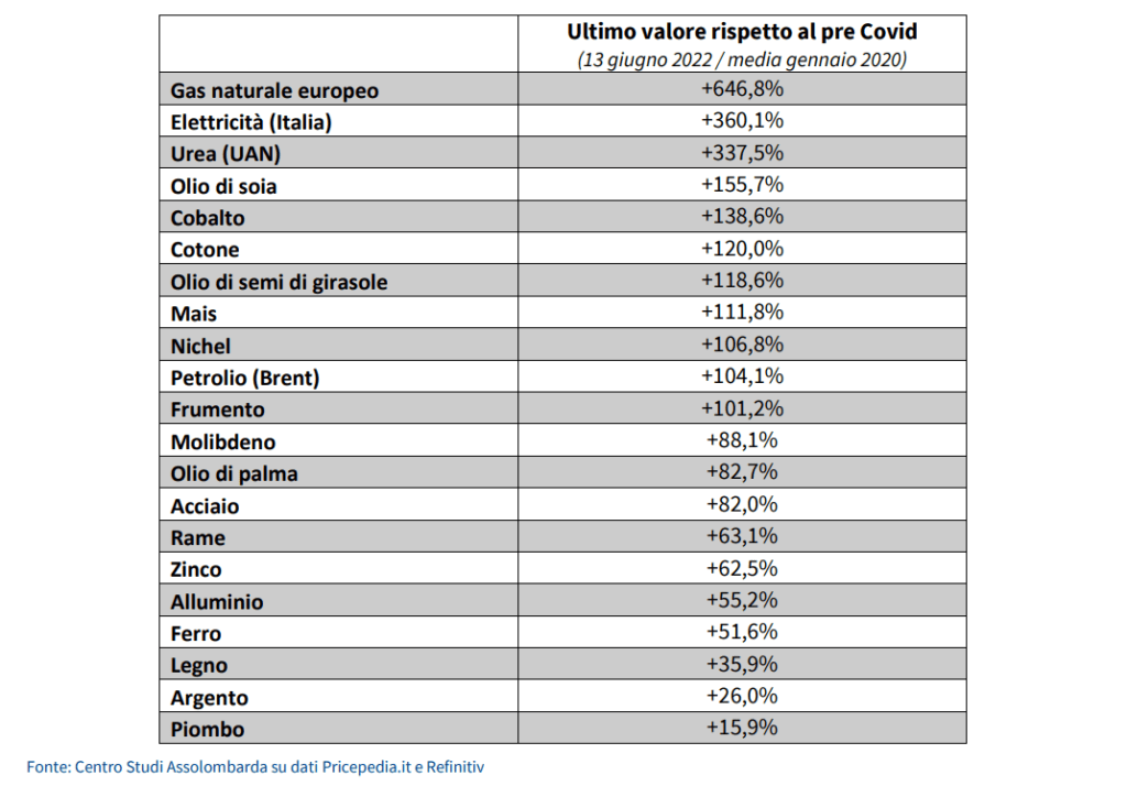 I prezzi delle materie prime nel confronto con il periodo pre-Covid