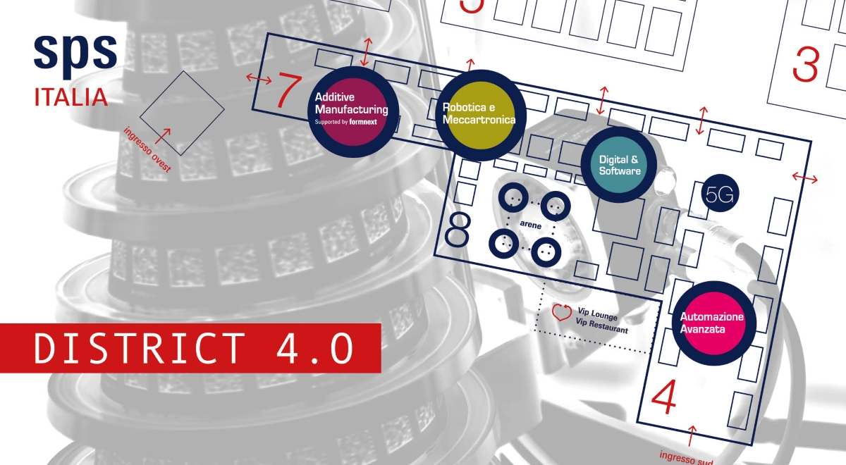 La fiera si svolgerà su sei padiglioni, di cui tre saranno dedicati al District 4.0 e alle sue quattro aree: automazione avanzata, robotica e meccatronica, additive manufacturing e digital & software.
