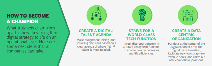 Ciò che veramente rende campione è il come la strategia digitale viene posta a livello operativo. Ciò che occorre può essere riassunto in tre punti: