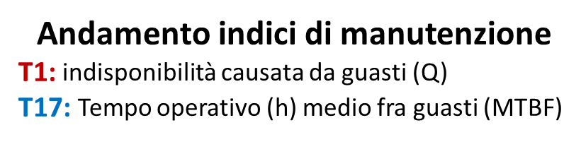 Downtime due to maintenance: Tempo di indisponibilità a causa della manutenzione, è calcolato con il ‘Sistema Informativo di Manutenzione’ (INFOR) valutando i cambiamenti di stato macchina all’interno degli «Ordini di Lavoro»