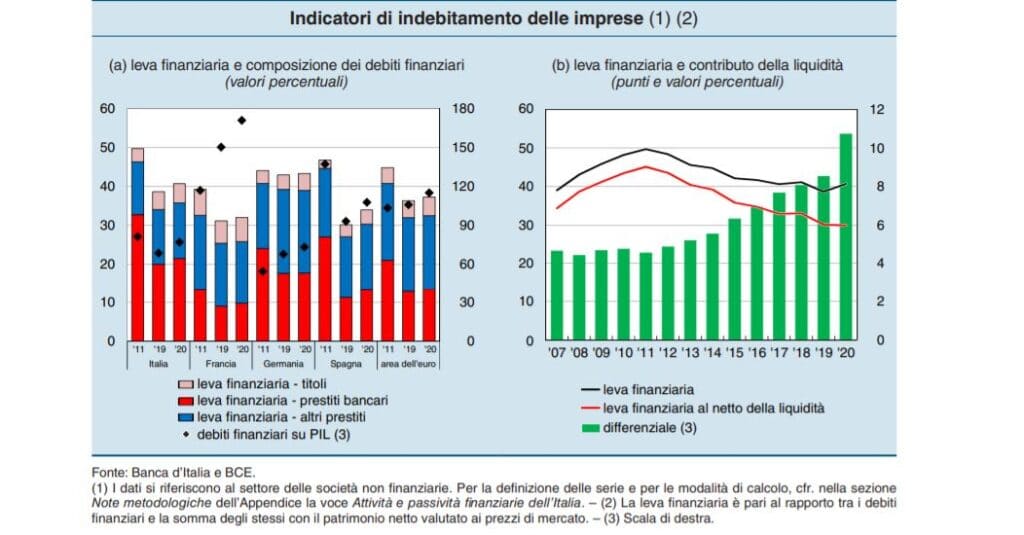 Per quanto concerne la dinamica settoriale relativa all’indebitamento delle imprese, la situazione è piuttosto eterogenea, con le imprese operanti nei settori più colpiti dalla pandemia (ristorazione, alloggio e intrattenimento) tra le più indebitate.