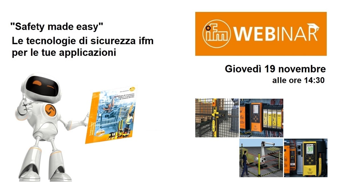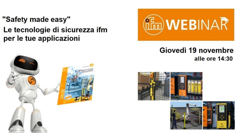 Giovedì 19 novembre 2020, ore 14.30, appuntamento con un nuovo webinar gratuito organizzato da ifm electronic dal titolo “Safety made easy”.