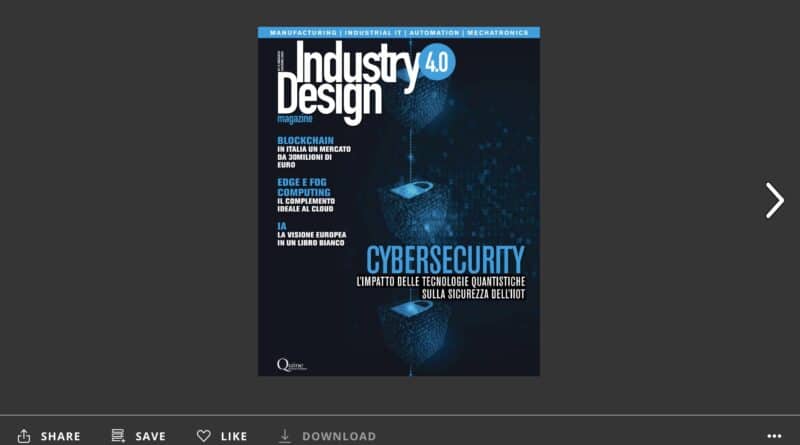 Industry 4.0 Design Magazine è una pubblicazione di Quine Business Publishers. L’editoriale del numero di Giugno 2020, firmato dal direttore tecnico Franco Canna, si intitola “L’architettura della fabbrica del futuro tra Edge e Cloud”. Ve lo riportiamo qui di seguito. In fondo potete sfogliare l’intera rivista.