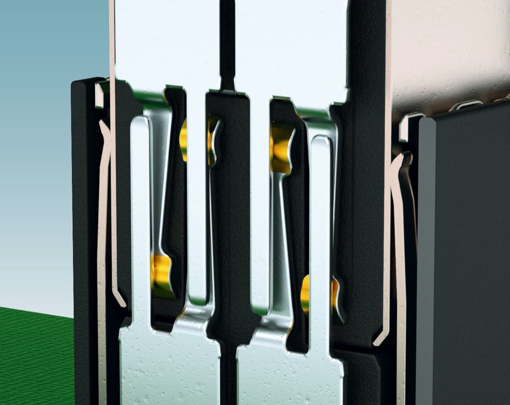 Tutti i connettori scheda-scheda sono progettati per correnti fino a 1,4 A e tensioni fino a 500 V AC, con soluzioni con numero di poli variabile da 12 ad 80. In moduli compatti, la protezione contro l’inversione di polarità è particolarmente importante per evitare danni ai contatti durante l’inserimento e per garantire connessioni stabili a lungo termine all’interno del dispositivo. Tutti i connettori scheda-scheda sono conseguentemente polarizzati: la speciale geometria del corpo isolante impedisce affidabilmente inserimenti errati di connettori maschio e femmina.